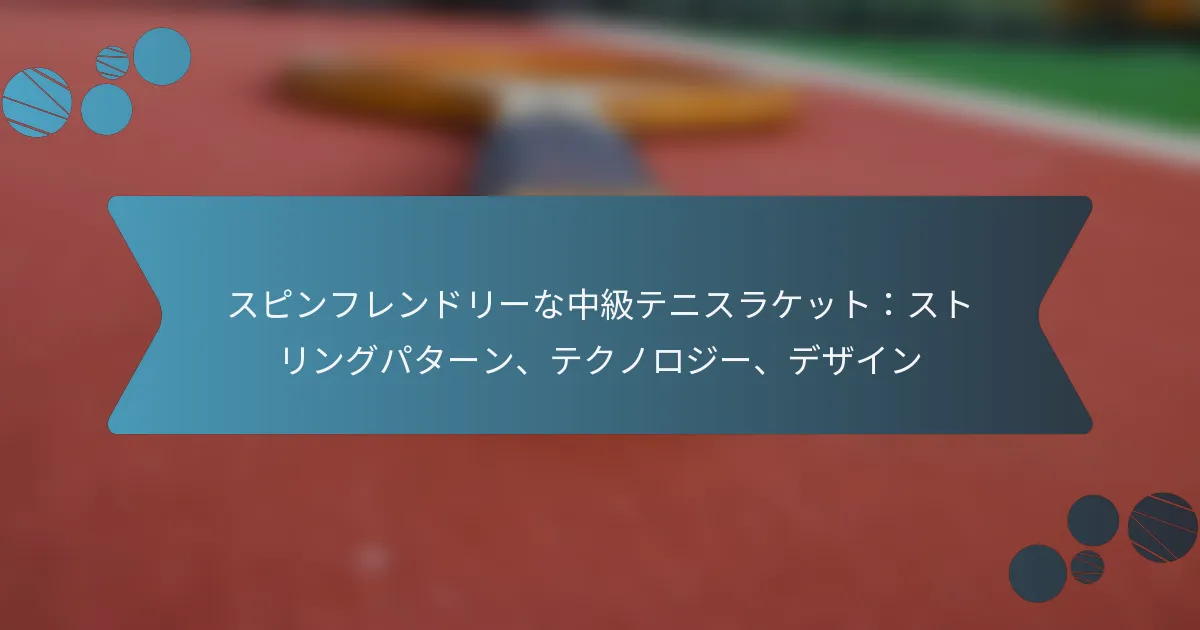 スピンを生成しやすい中級ラケットは、プレーヤーのコントロールとボールの回転を向上させ、ゲームを改善したい人に最適です。考慮すべき重要な要素には、ストリングパターン、先進技術、全体的なデザインが含まれ、これらすべてがラケットのパフォーマンスに寄与します。